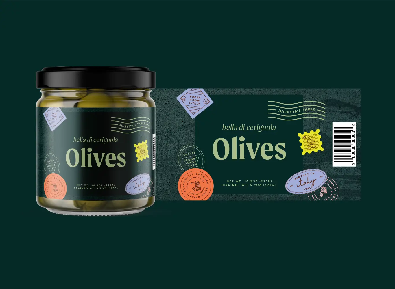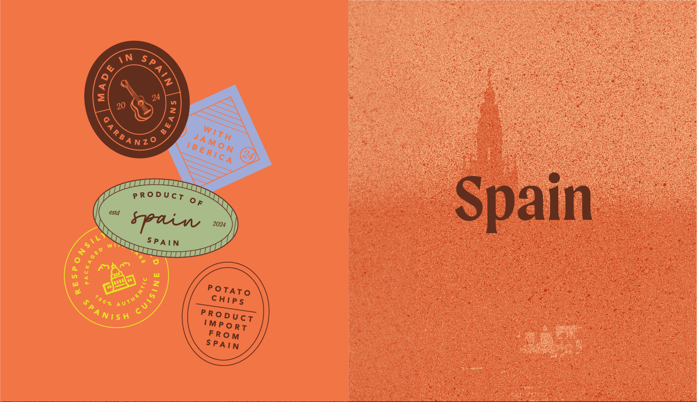 The client wanted to creative a cohesive packaging identity for Spanish, Italian, and French products. They wanted it to feel like a fun imported product with a heavy inspiration on stamps, hand drawn elements, and obvious but not traditional colors.